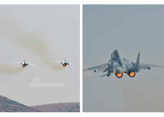 MiG-23 và MiG-29 đốt tăng lực lao nhanh lên trời.