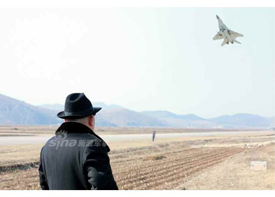 Trong ảnh, ông Kim Jong-un theo dõi biên đội tiêm kích MiG-29 thao diễn ở độ cao thấp ngay tại căn cứ.