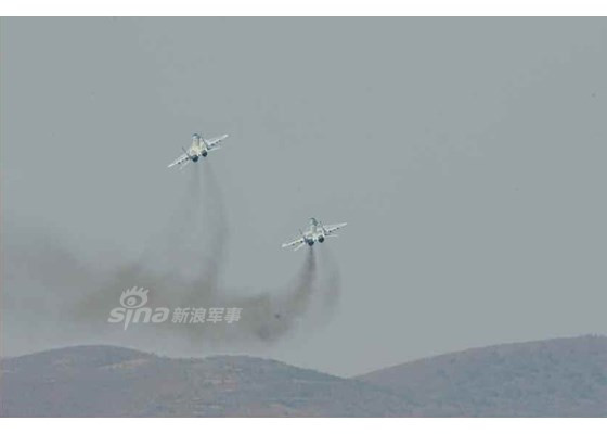 Những chiếc MiG-21/J7 (bên phải) cũng tham gia cuộc tập trận của Không quân Triều Tiên.