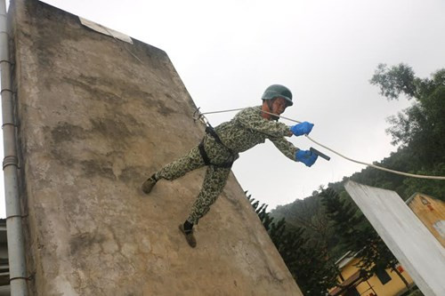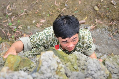 Bức tường thẳng đứng, trơn trượt cũng không thể khuất phục được ý chí quyết tâm của các chiến đấu viên.