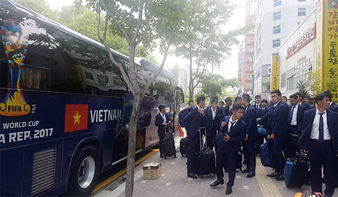 Sau hành trình di chuyển hơn 3 giờ đồng hồ, khoảng 16h30 chiều nay 18/5 (giờ Việt Nam), đội tuyển U20 Việt Nam đã có mặt tại Cheonan. Toàn đội trong trang phục đồ vest rất bảnh bao.