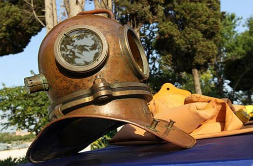 Tất nhiên với khối thiết bị nặng hàng trăm kg mang theo mỗi thợ lặn đều không thể mang được đồ nếu không có sự trợ giúp của đội hỗ trợ trên mặt đất. Và bộ phận quan trọng nhất của mỗi đồ lặn là mũ lặn bằng kim loại cung cấp không khí cho thợ lặn khi dưới nước.