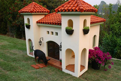 Nơi ở của các chú cún giống như biệt thự thu nhỏ với hoa lá, đèn trang trí.