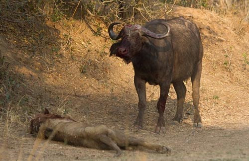Tuy nhiên, với sức mạnh của mình, đặc biệt là cặp sừng sắc nhọn, trâu rừng để quyết chiến với sư tử giành giật mạng sống.