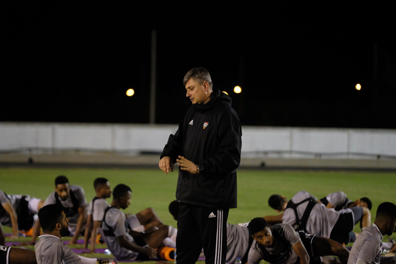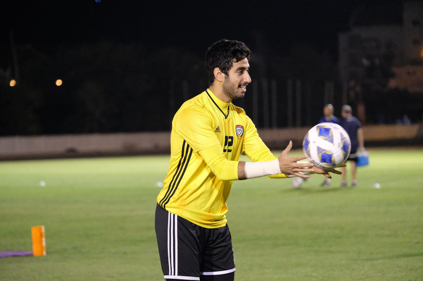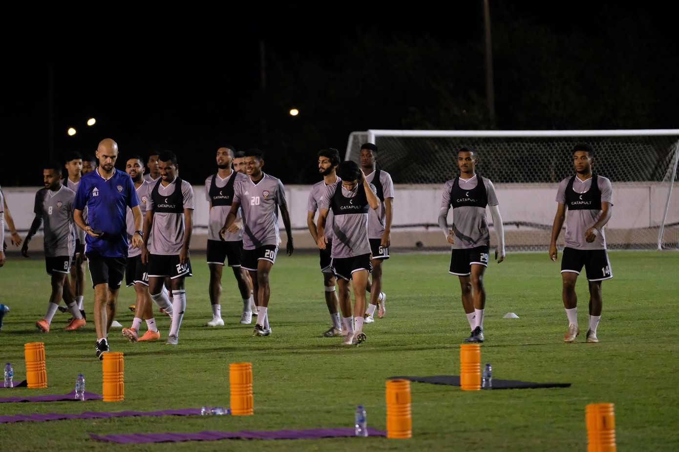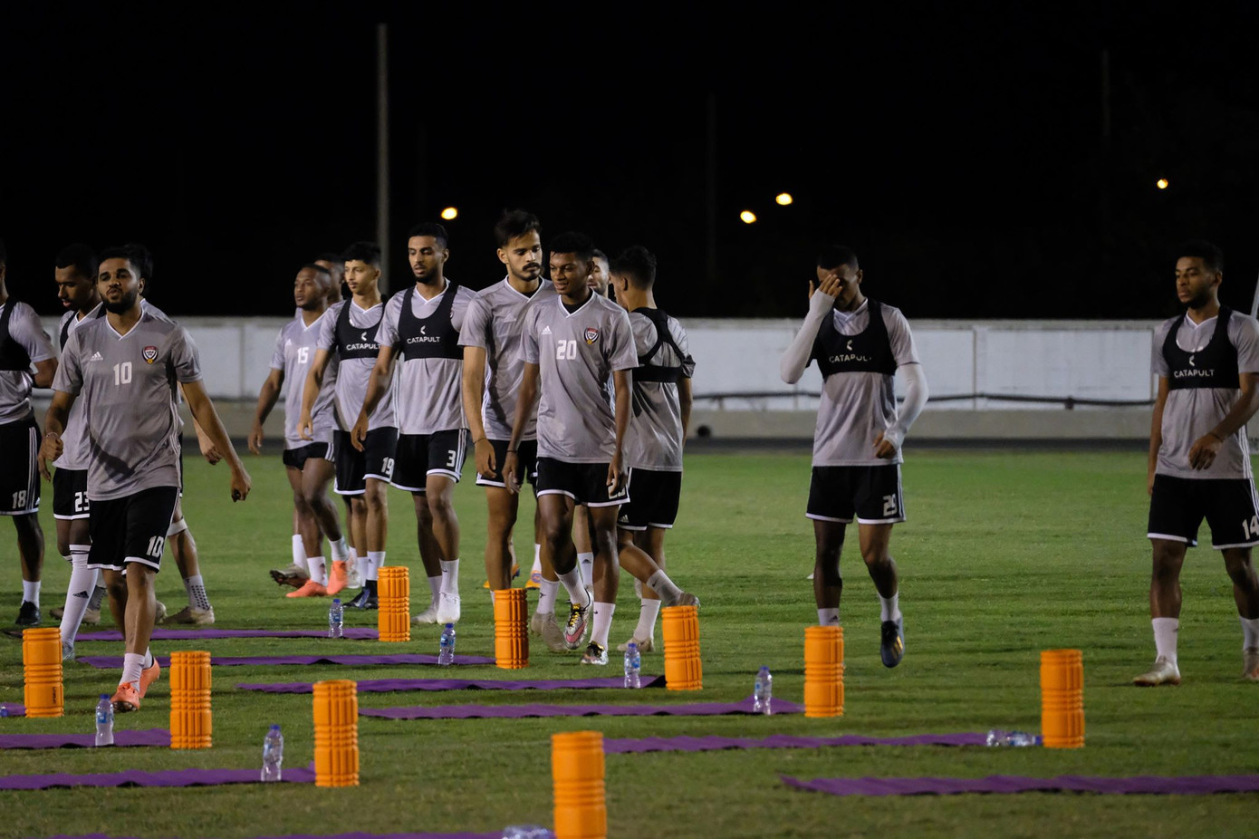 Các cầu thủ U23 UAE tỏ ra khá sung mãn trong buổi tập tối 7/1.