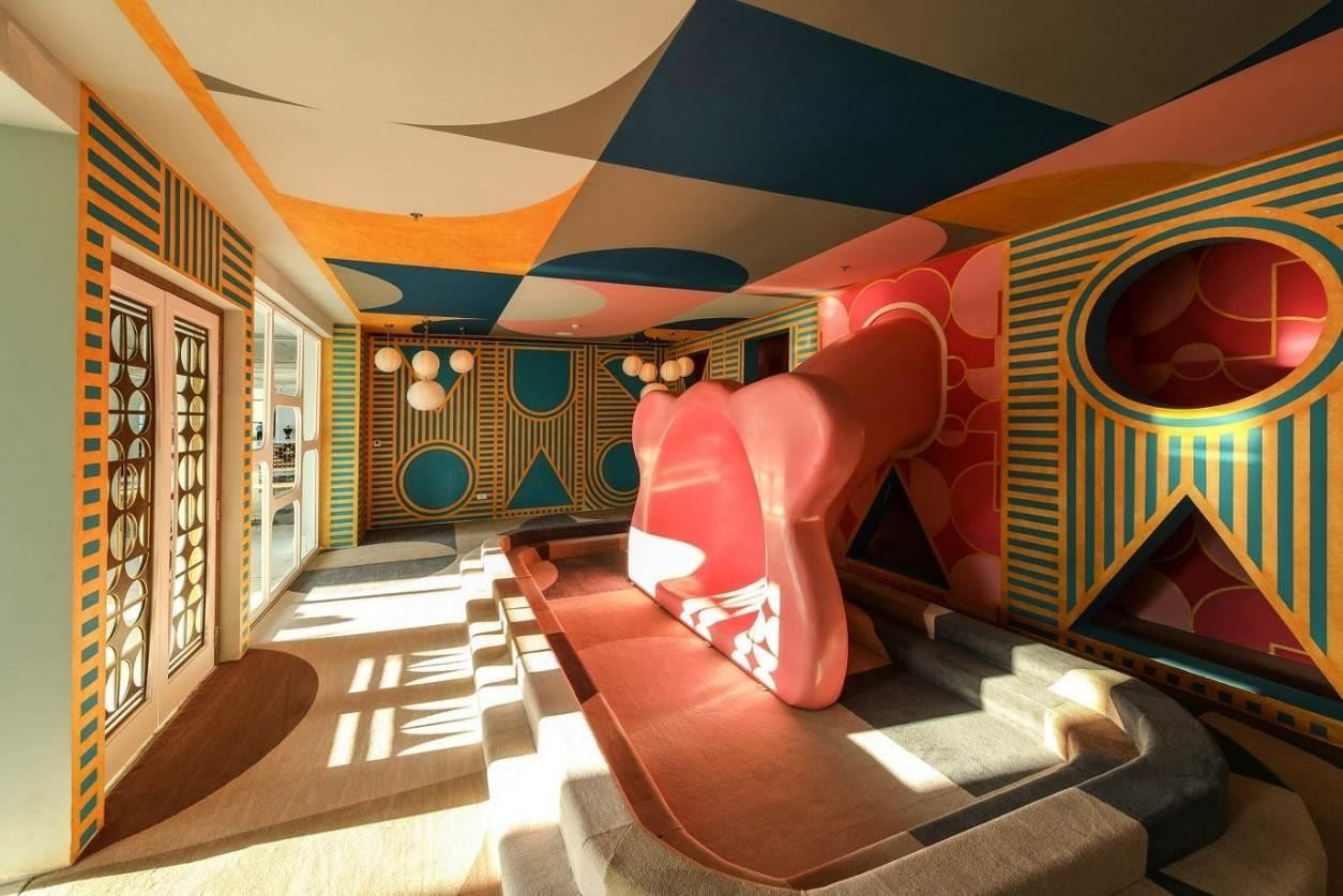 Qua đôi bàn tay tài hoa của Bill Bensley, phong cách nghệ thuật Mid Century Modern được khắc họa rõ nét qua những hình khối đặc trưng, vòm cong của cửa, đường line sắc nét và palette với những màu sáng có tính tương phản cao.
