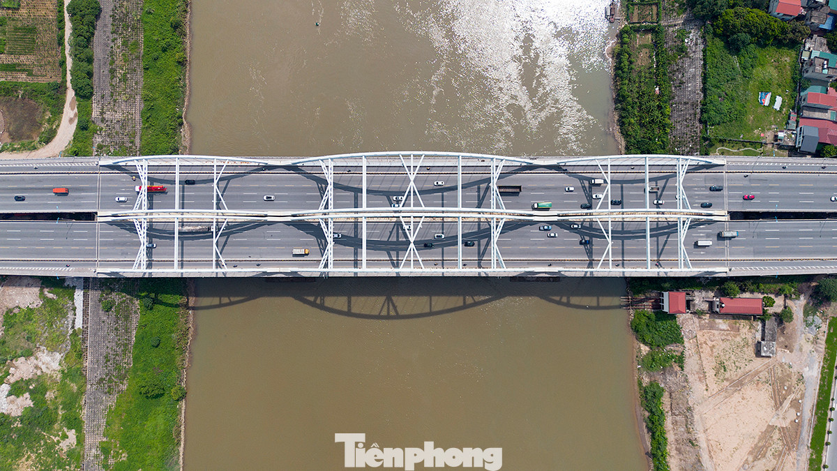 Điều đặc biệt so với những cây cầu còn lại ở Hà Nội là công trình này có nhiều làn đường. Ngoài cùng 2 bên là đường cho người đi bộ, tiếp đó là làn đường dành cho xe máy và trong cùng là những làn cho xe ô tô.