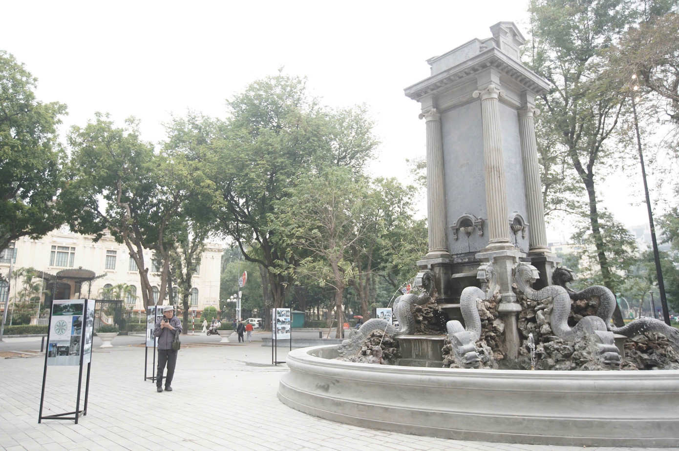 | Đài phun nước Con cóc hoàn thành việc cải tạo, trùng tu, vẫn giữ nét cổ kính của công trình hơn 100 năm tuổi. Ảnh: Duy Phạm. |