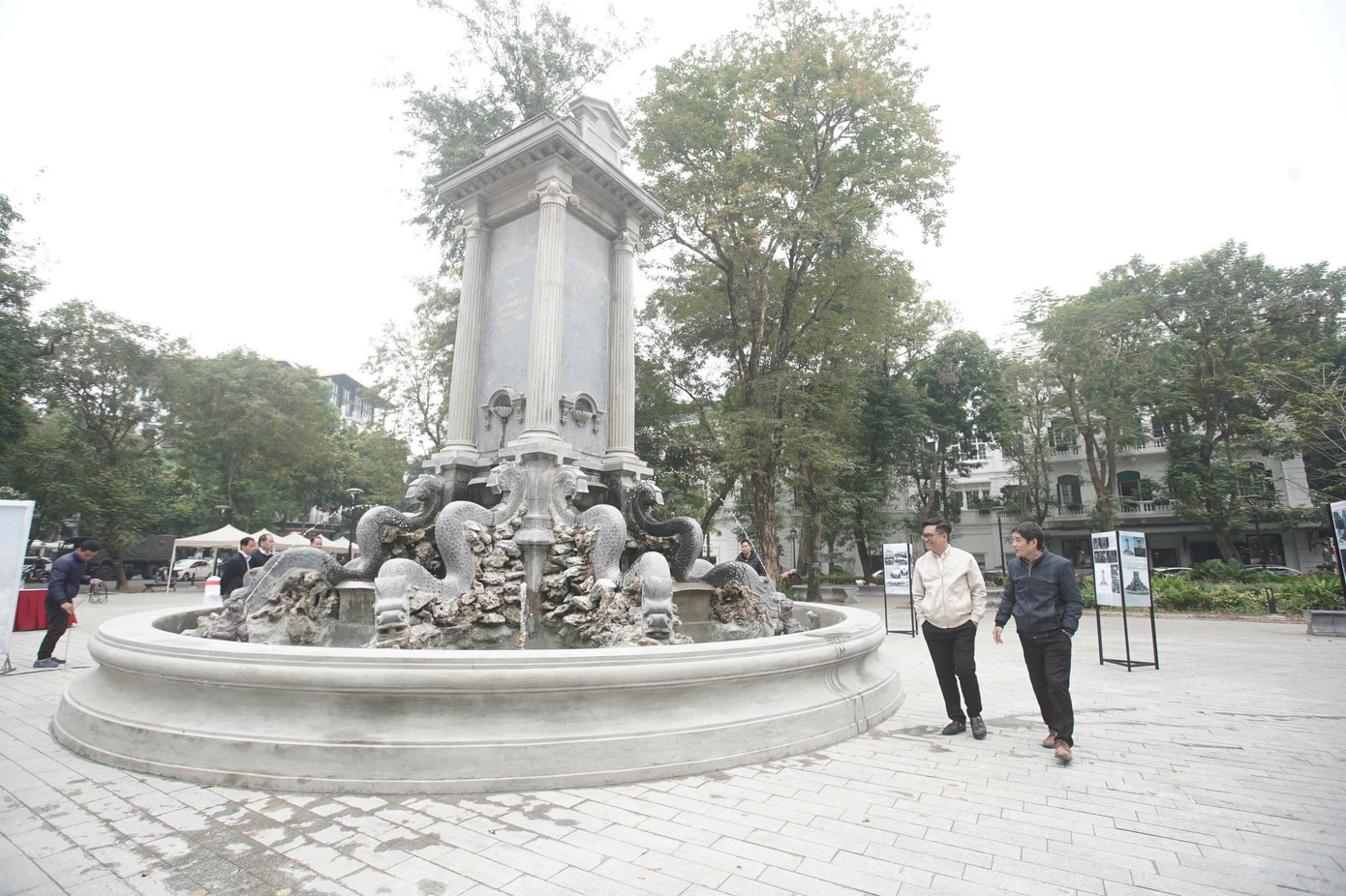 "Do hồ sơ lưu trữ về công trình không còn nhiều, chúng tôi phải đi đến phương án hạ giải phần lớn cấu trúc Đài phun nước. Đây cũng là cơ hội để tìm hiểu nguyên lý hoạt động, đường dẫn nước, bơm nước, cấu trúc đặc biệt của Đài phun nước", KTS Emmanuel Cerise nói.