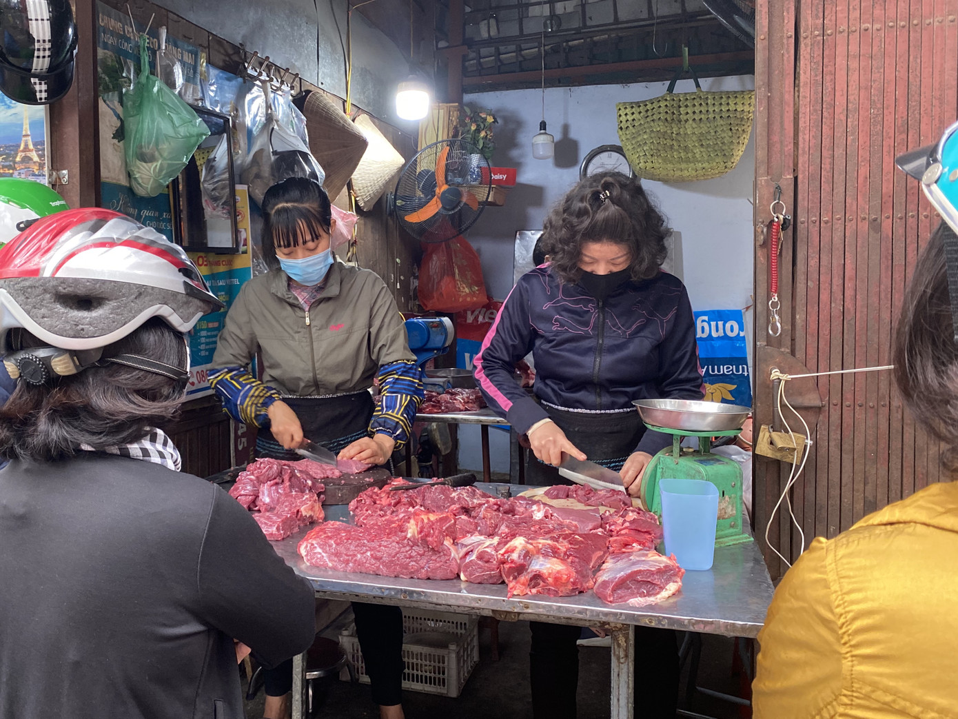 Bên cạnh hoa tươi, hoa quả, ngày nghỉ cuối tuần, các bà nội trợ còn tranh thủ mua món ăn “tươi”, đổi vị bữa ăn cho gia đình. Suốt thời gian qua, giá thịt lợn giữ mức ổn định, phổ biến 150.000 – 170.000 đồng/kg. Thịt bò thăn 260.000 đồng/ kg, gầu 320.000 đồng/kg, bắp 350.000 – 400.000 đồng/kg.