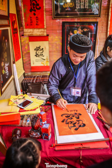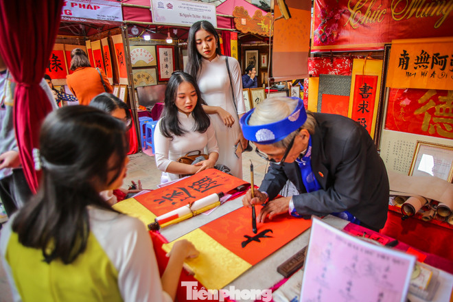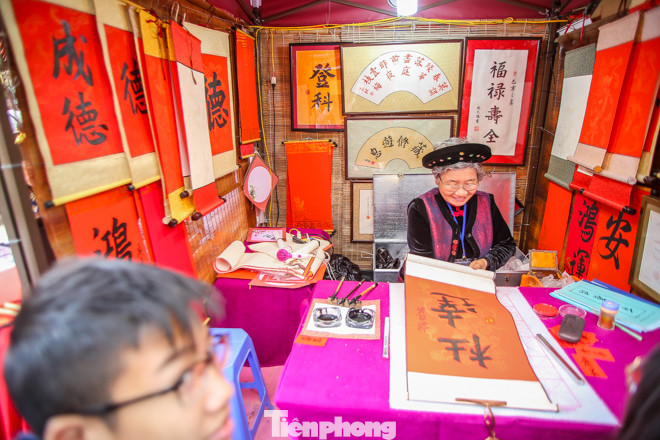 Gian hàng các ông đồ luôn chật cứng người quây quần, học hỏi, xin chữ...