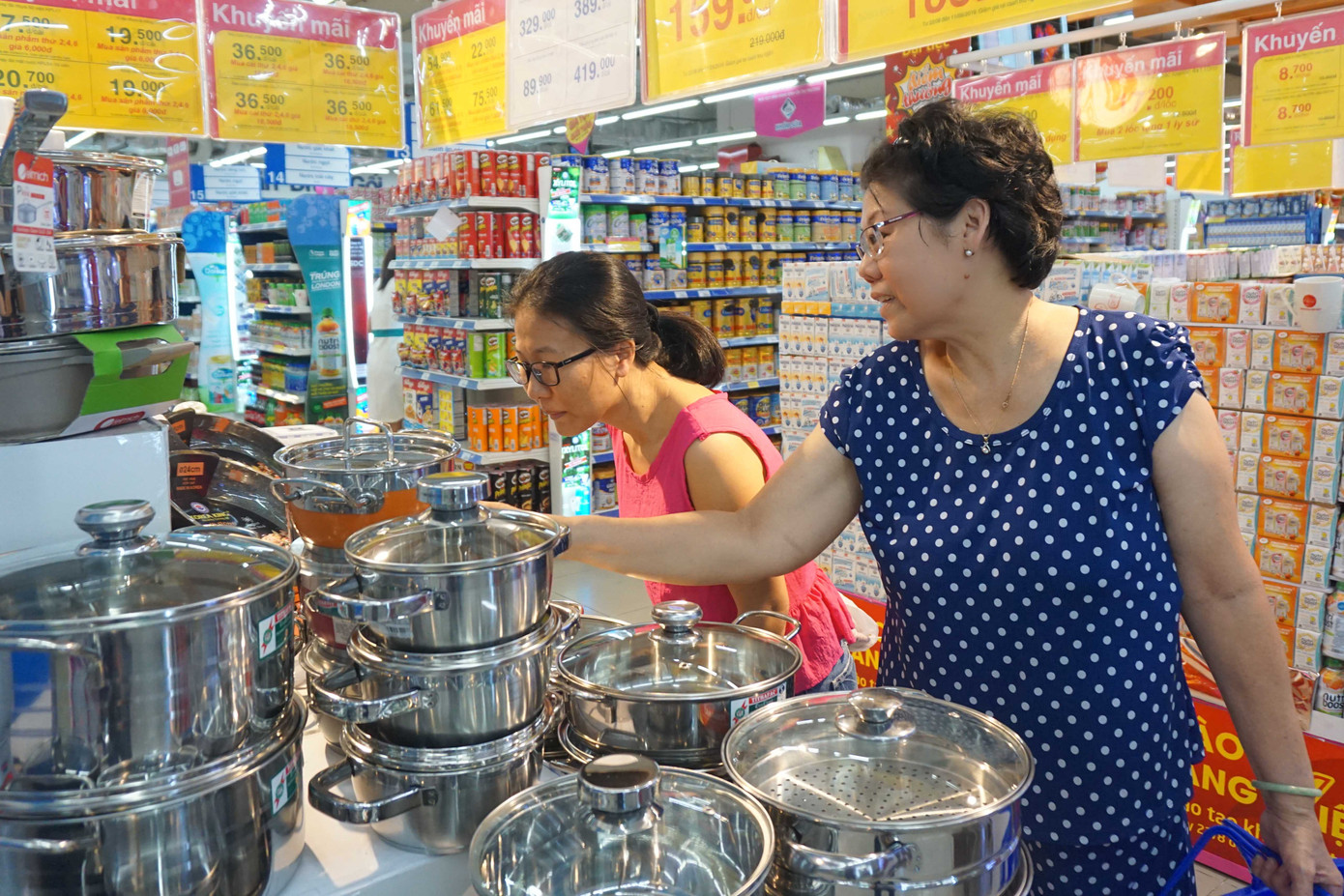 Riêng trong ba ngày cuối tuần này 13 – 15/12/2019 cũng có khuyến mãi kép giảm giá hơn một nửa và tặng phiếu mua hàng cho các mặt hàng gia dụng, thời trang, hóa phẩm, … Ba ngày cuối tuần kế tiếp, từ ngày 23 đến 25/12/2019 có chương trình mua chén thủy tinh, hộp nhựa, dầu ăn, nước giải khát, dầu gội, … giá 0 đồng với điều kiện hóa đơn đơn giản.