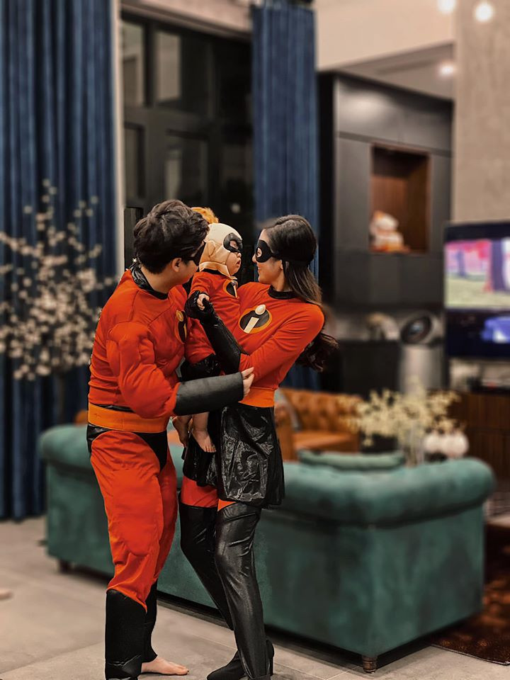 Á hậu Tú Anh và ông xã hào hứng chuẩn bị cho ngày lễ Halloween đầu tiên của cậu quý tử.