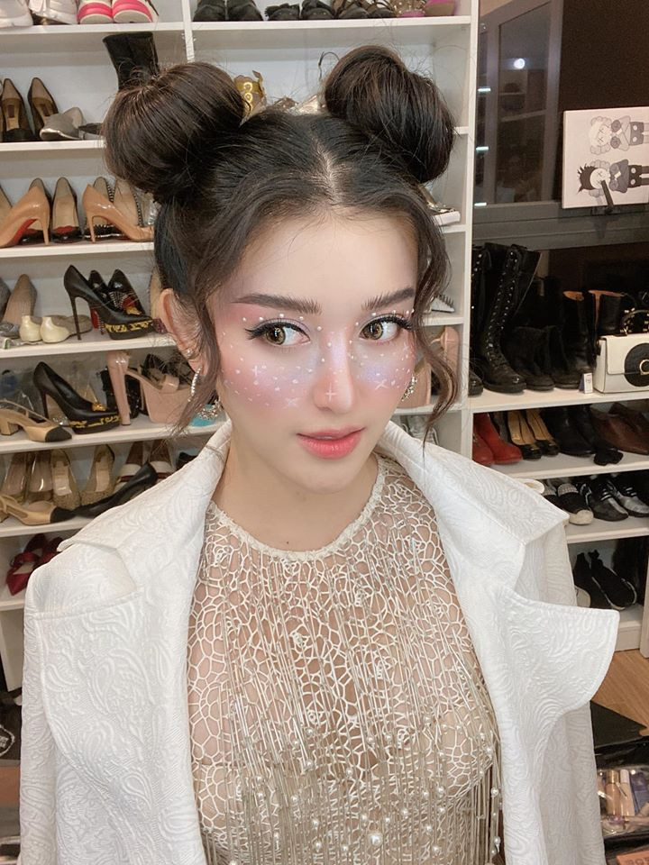 Tường San tiếp tục trổ tài tự make-up vô cùng điêu luyện khiến fans ngưỡng mộ.