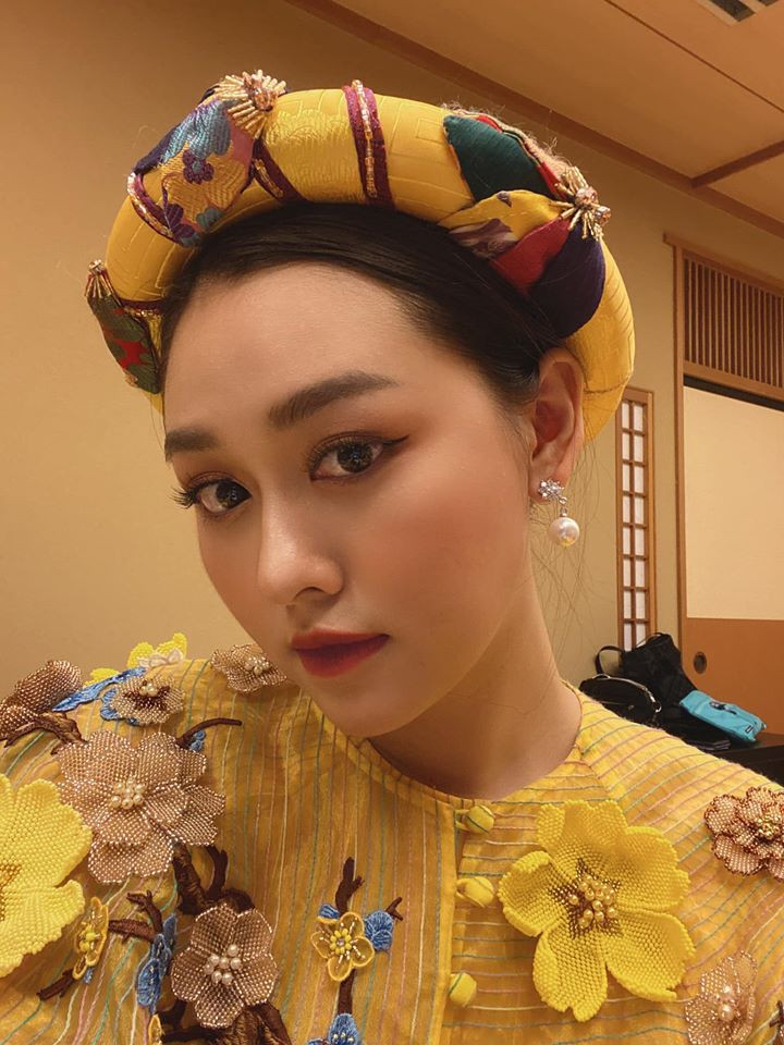 Á hậu Tường San mặc áo dài độc đáo tại Hoa hậu Quốc tế 2019 ở Nhật Bản.