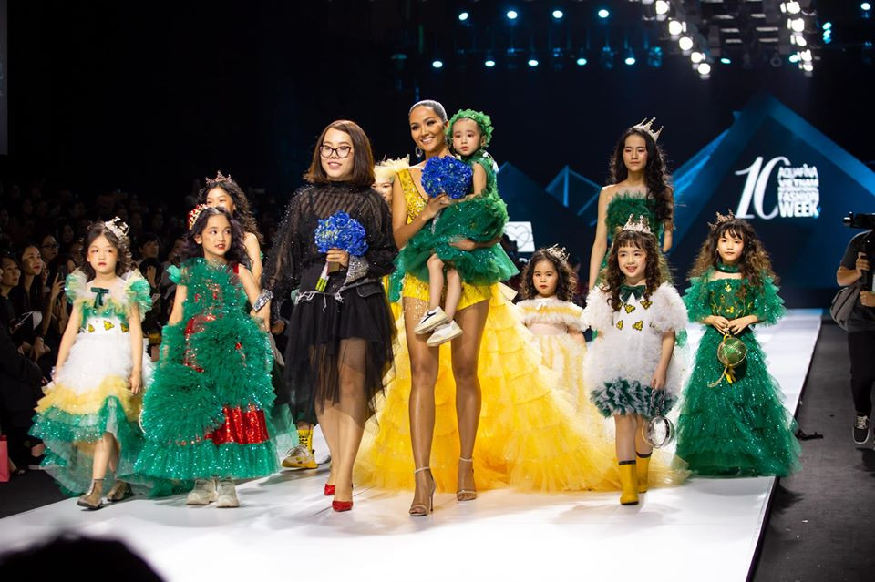 H'Hen Niê xuất hiện cùng các thiên thần nhỏ đáng yêu trên sàn diễn.