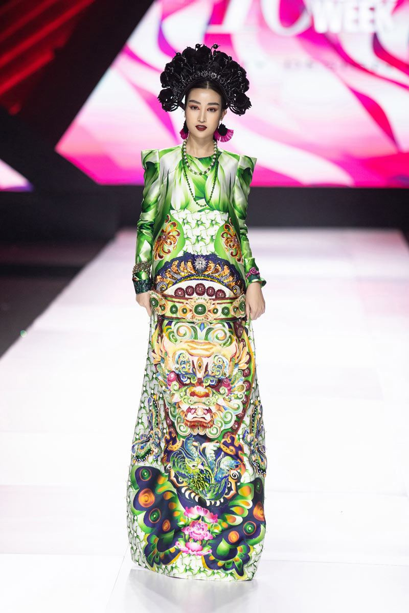 Hoa hậu Đỗ Mỹ Linh hoá nàng Mỵ Châu với tạo hình cổ trang, đảm nhận vai trò vedette trên sàn diễn.