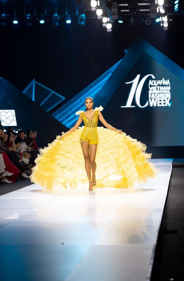 Hoa hậu H'Hen Niê sải bước đầy tự tin và quyền lực trên sàn catwalk.