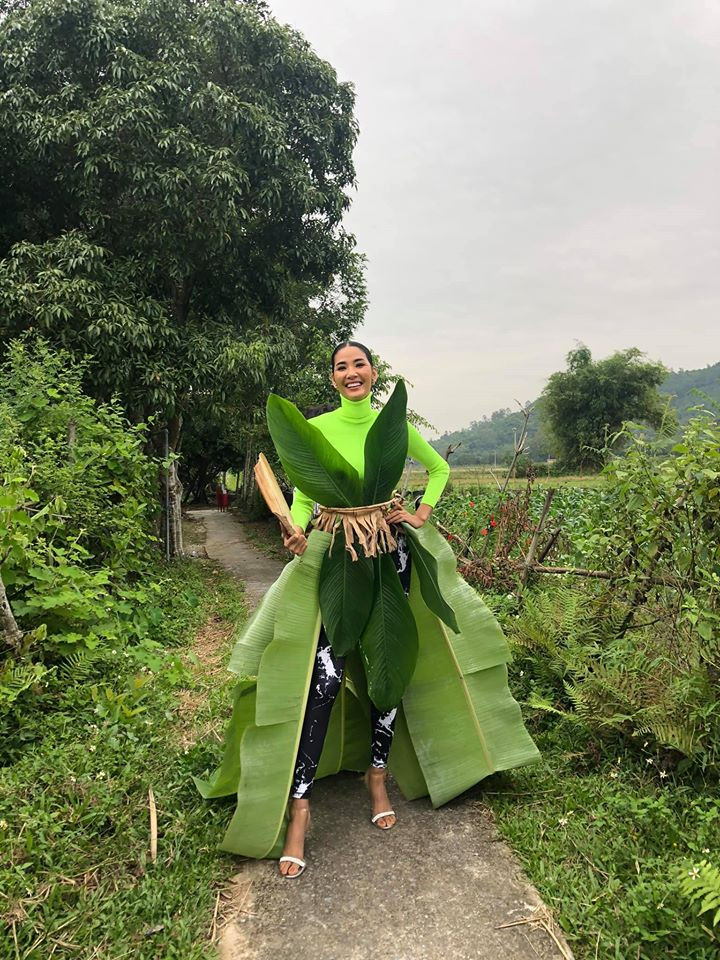 Bản tin Hoa hậu 1/11: Hoàng Thuỳ đang có chuyến về thăm nhà ở Thanh Hoá. Đúng dịp này là lễ hội hoá trang Halloween nên Hoàng Thuỳ đã quyết định 'chơi lớn' khi mặc bộ trang phục độc đáo làm bằng những tàu lá chuối. Trên trang cá nhân, Á hậu Hoàn vũ Việt Nam 2017 hóm hỉnh: "Trang phục dân tộc mang đến Miss Universe được không cả nhà ơi".