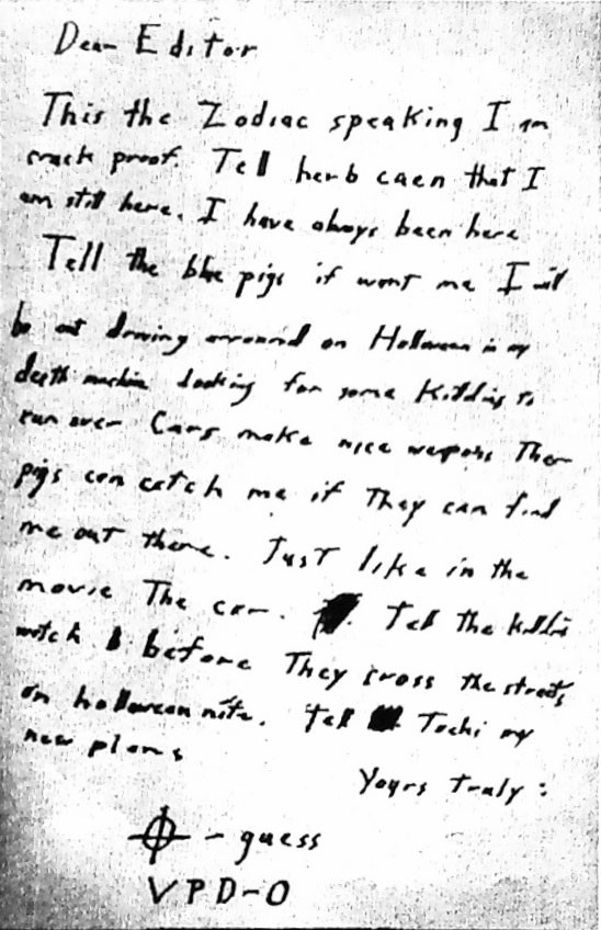 8. Những lá thư của tên cuồng sát Zodiac