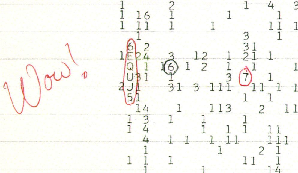 Một đêm mùa hè năm 1977, Jerry Ehman, một tình nguyện viên của chương trình SETI (Search for Extraterrestrial Intelligence - một chương trình rộng lớn tìm kiếm các tín hiệu của trí thông minh ngoài trái đất), có thể là người đầu tiên đã nhận được một thông điệp có chủ ý từ hành tinh khác.