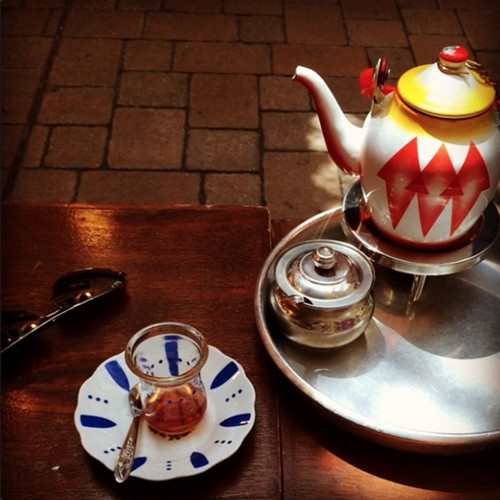 Trà là một thức uống gây nghiện với người Thổ Nhĩ Kỳ. Món trà thường được dọn ra với viên đường nhỏ và một chiếc thìa con. Khi tách trà còn nóng, thả viên đường vào vào và dùng thìa khuấy đều.