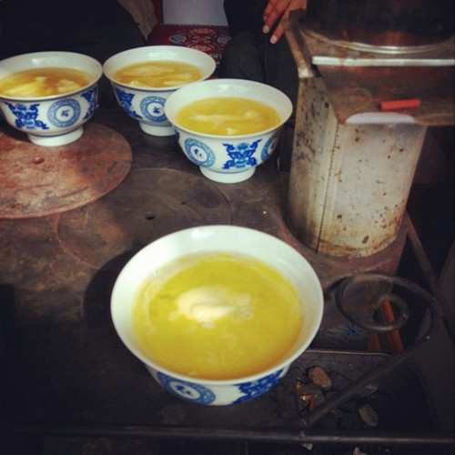 Trà của người Mông Cổ được pha với muối, sữa và thường có cả đồ ăn như cơm hoặc mỳ.