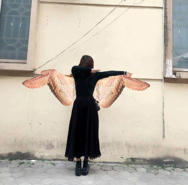 Cô gái mảnh mai bỗng dưng có thêm một đôi "cánh gà". Ảnh: Đinh Anh Dũng.