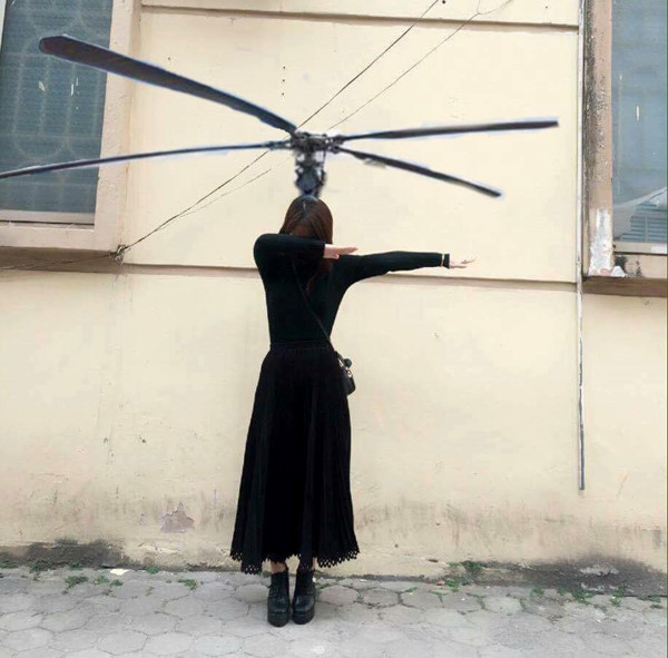 Thời buổi hiện đại, thiếu nữ nên có cánh của trực thăng để "bay cho nhanh". Ảnh: Kiên Chupin.