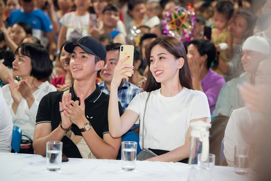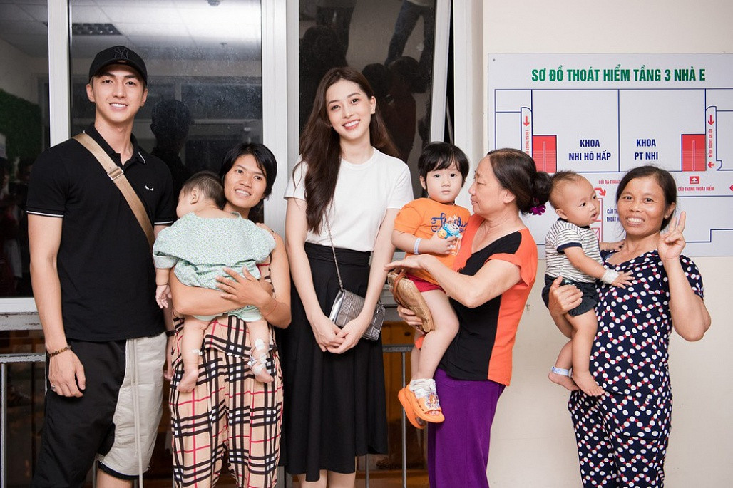 Diễn viên Bình An và bạn gái - Á hậu Phương Nga đến thăm và tặng quà cho các bệnh nhi tại bệnh viện Đa Khoa Xanh Pôn.