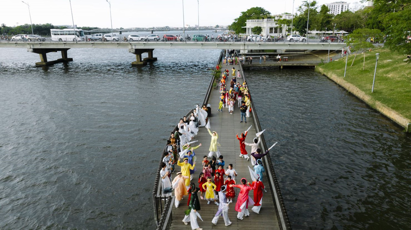 | Lễ phát động tuần lễ áo dài cộng đồng Huế 2023 tại di tích Nghinh Lương đình - Huế. Ảnh: Văn Thể Huế |