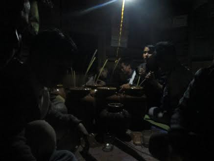 Ngồi chung mâm cỗ nhà gái thết đãi, thầy giáo Đinh Miệt (anh trai chú rể) nói đùa rằng: “Ở đây, muốn lấy được con gái nhà người ta, cả họ nhà trai phải trắng đêm “chịu nhục”! Nhà gái mời rượu mình phải uống. Nhà gái muốn nhà trai say mình phải uống cho say. Nhà trai phải ngồi tiếp chuyện từ tối cho tới sáng. Khi nào họ chưa hài lòng thì mình chưa được đưa dâu về. Đêm cưới chính thức ở nhà gái sẽ quyết định giờ đưa dâu, nên nhà trai phải cố gắng“chịu nhục”. Đêm cưới chính thức ở nhà cô dâu.
