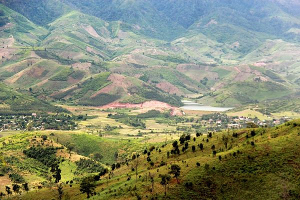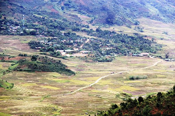 Từ trên cao nhìn xuống Măng Ri, thấy bạt ngàn ruộng bậc thang