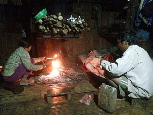 Người dân xã Măng Ri đốt lửa sưởi ấm vào ban đêm