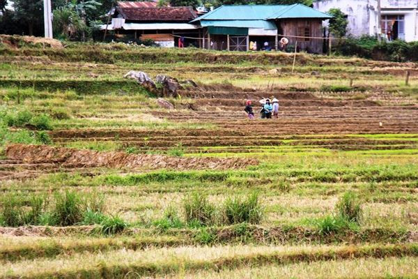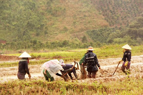 Sau cơn mưa, những người phụ nữ vẫn lội sình cuốc ruộng