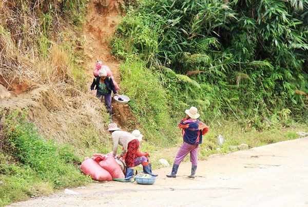 Người dân thu hoạch nông sản trồng trên núi Ngọc Linh trở về làng
