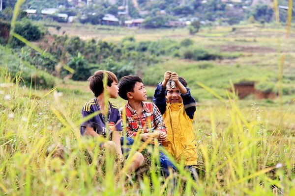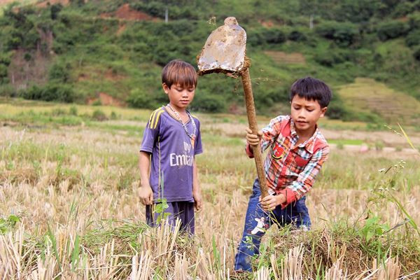 Các em học sinh ở Măng Ri bắt chuột đồng sau giờ tan trường