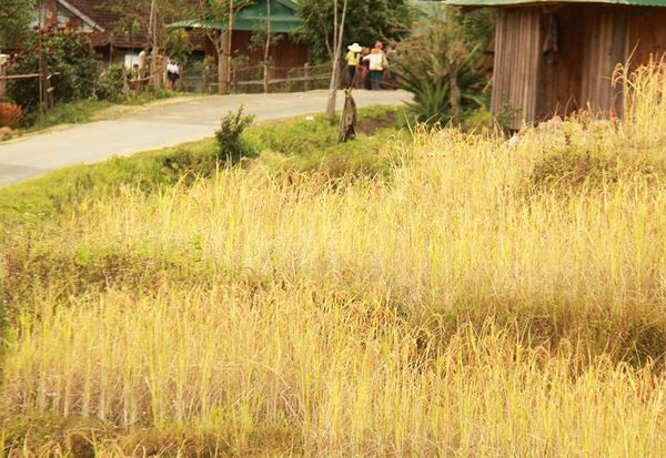 Hai bên đường vào xã Măng Ri là những ruộng lúa chín rộ