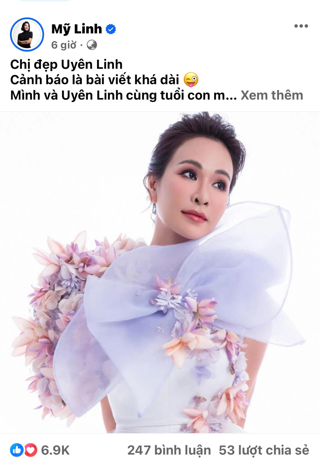 Trong quá trình tham gia Chị Đẹp Đạp Gió Rẽ Sóng 2023, mỗi khi đến dịp sinh nhật của các "chị đẹp", ca sĩ Mỹ Linh lại đăng một "tâm thư" dài trên trang cá nhân để chúc mừng và kể lại những ấn tượng đẹp về đồng nghiệp.