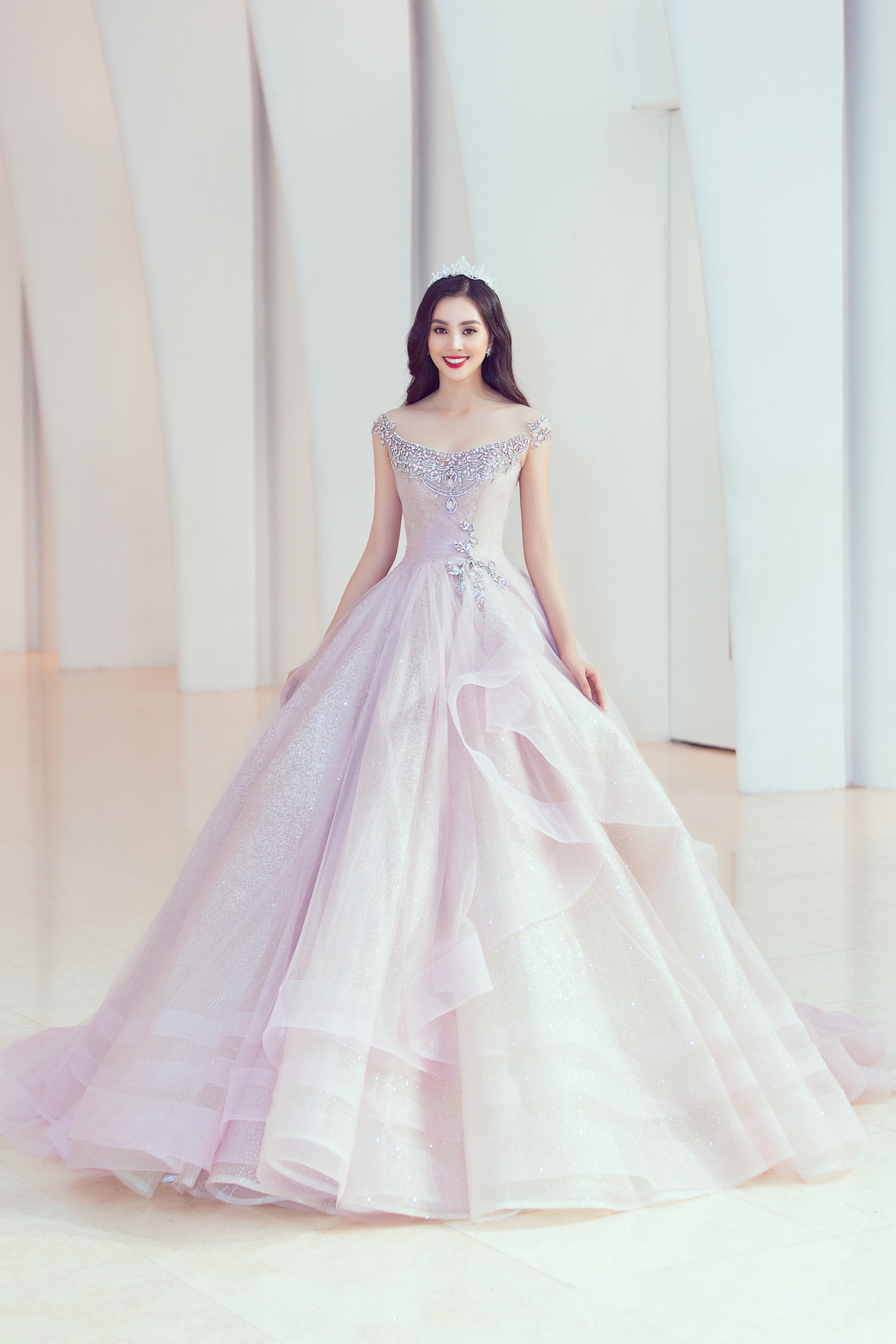 Hoa hậu Tiểu Vy hoá nàng công chúa ngủ trong rừng với bộ váy xoè màu hồng nhạt xinh đẹp.