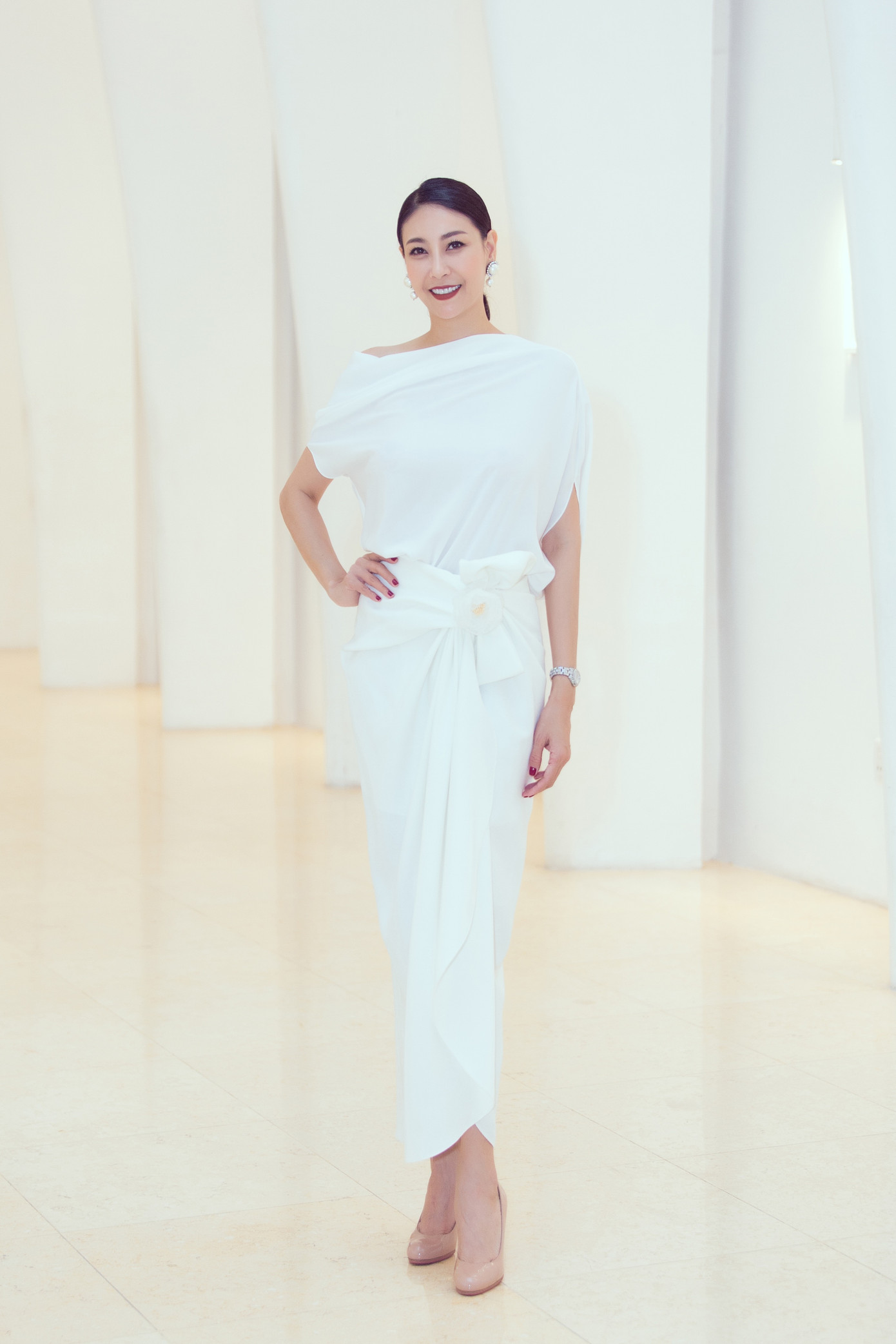 Diễn viên hài Khả Như diện cây trắng thanh lịch.