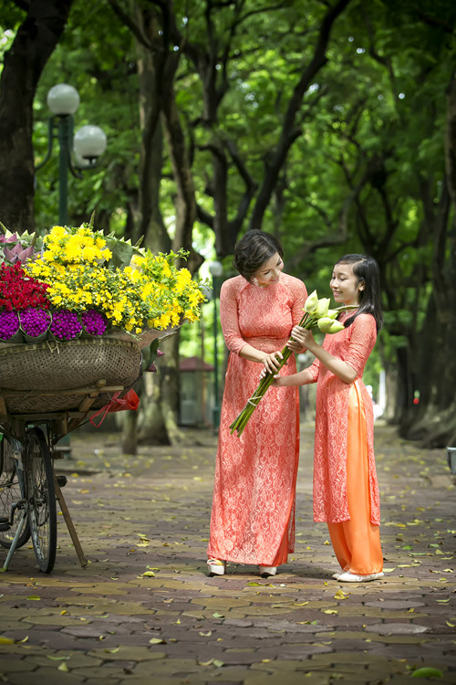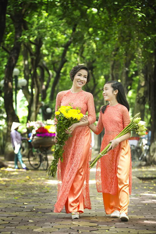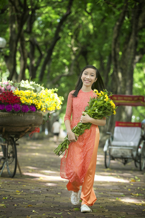 Vì tính cách hay ngượng ngùng nên khi Mỹ Linh rủ con gái thực hiện bộ ảnh áo dài kỷ niệm giữa tiết trời thu Hà Nội, cô bé khá lưỡng lự, nhưng cuối cùng cũng gật đầu chiều ý mẹ.