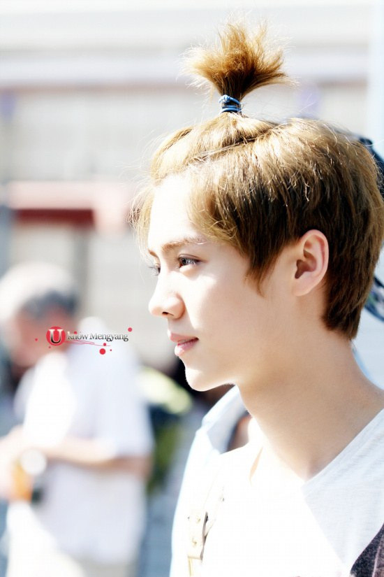 Khi không phải biểu diễn trên sân khấu, Lu Han cực chuộng kiểu tóc lộ trán, buộc chỏm như cây dừa hài hước.