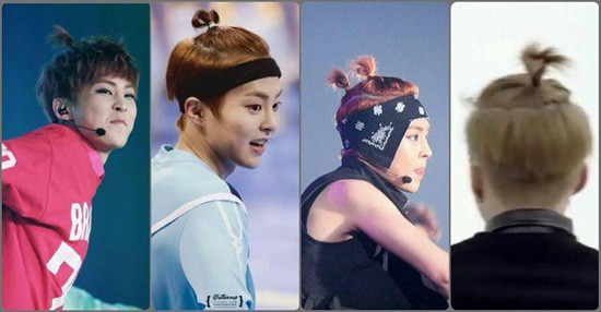 Trong thời gian quảng bá, Xiu Min (EXO) thường xuyên khiến các fan phát sốt với kiểu tóc buộc chỏm như con nít, giúp anh chàng khoe trọn khuôn mặt đáng yêu, trẻ hơn tuổi thật.