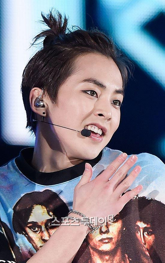 Kiểu tóc ngộ nghĩnh của Xiu Min giúp anh chàng nổi bật giữa hàng loạt mỹ nam trong nhóm.