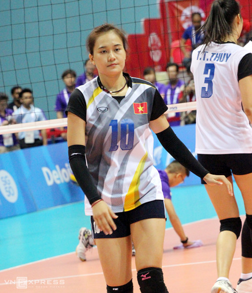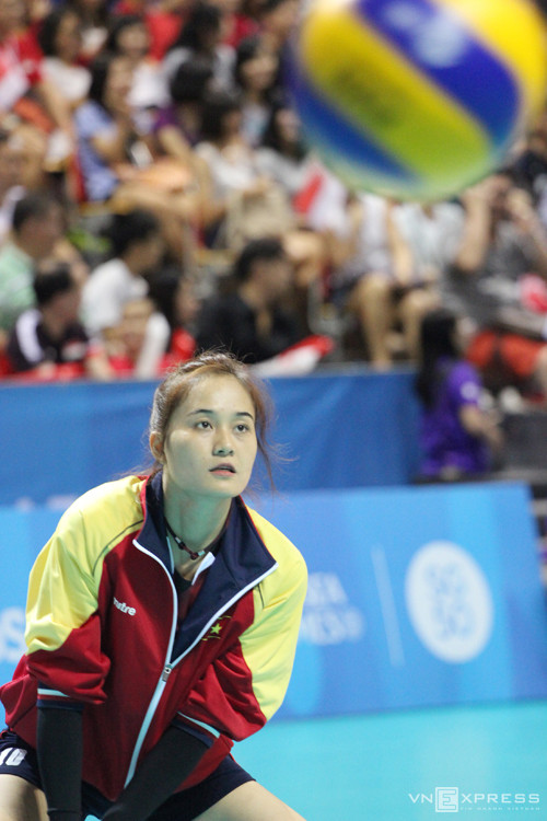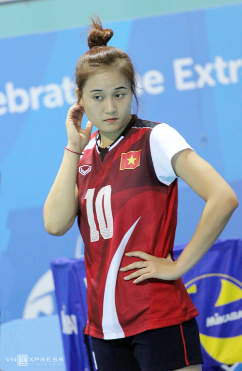 Được thay ra sân trong trận bán kết với Singapore vừa qua, nhưng chuyền hai thuộc biên chế Thông Tin Lienviet Postbank liên tục thay đổi tư thế đứng trong khi các đồng đội lại tỏ ra khá nghiêm túc.