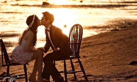 Cặp tình nhân hôn nhau say đắm trong bộ ảnh ngọt ngào tại biển. Mickey và Harisu nên duyên vợ chồng sau một thời gian ngắn tìm hiểu. Sau 8 năm chung sống, vượt qua nhiều tin đồn "sóng gió" hôn nhân, cặp đôi vẫn sống bên nhau rất hạnh phúc.