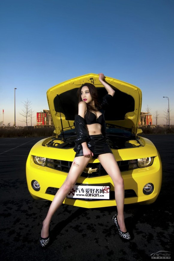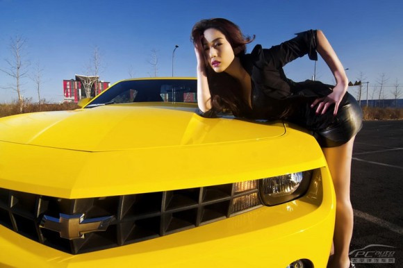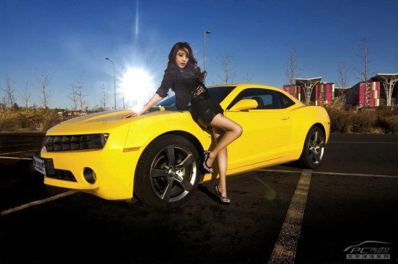 TPO - Người mẫu khoe thân hình với những đường cong nóng bỏng thiêu đốt bên cạnh chiếc xe cơ bắp tới từ nước Mỹ Chevrolet Camaro màu vàng long lanh.