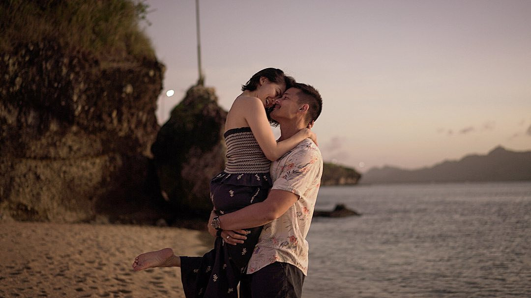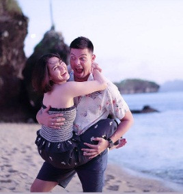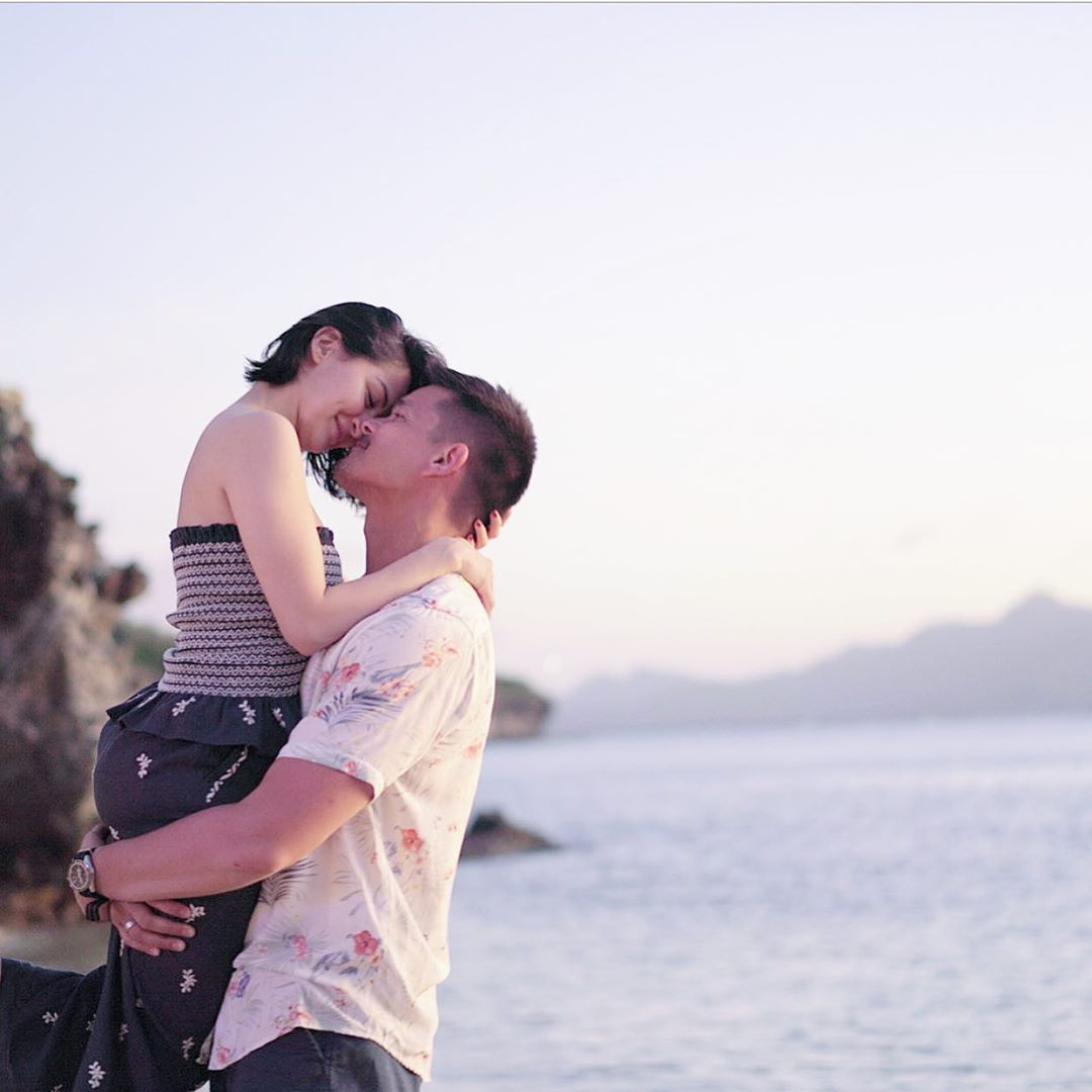 Tài tử Dingdong Dantes bế bổng cô vợ xinh đẹp trong vòng tay.
