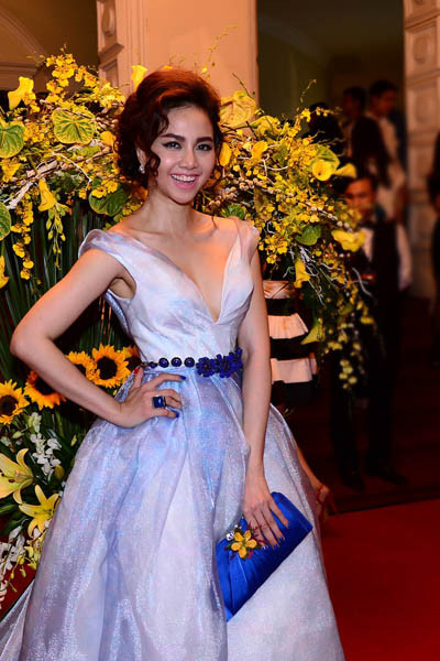 Diễn viên Trương Ngọc Ánh cũng thu hút mọi ánh nhìn khi diện bộ váy bó màu trắng hở vai của nhà thiết kế Lý Quí Khánh. Với kiểu tóc mang hơi hướng cổ điển, Trương Ngọc Ánh trông sang trọng, quý phái như những quý cô cách đây hàng chục năm
